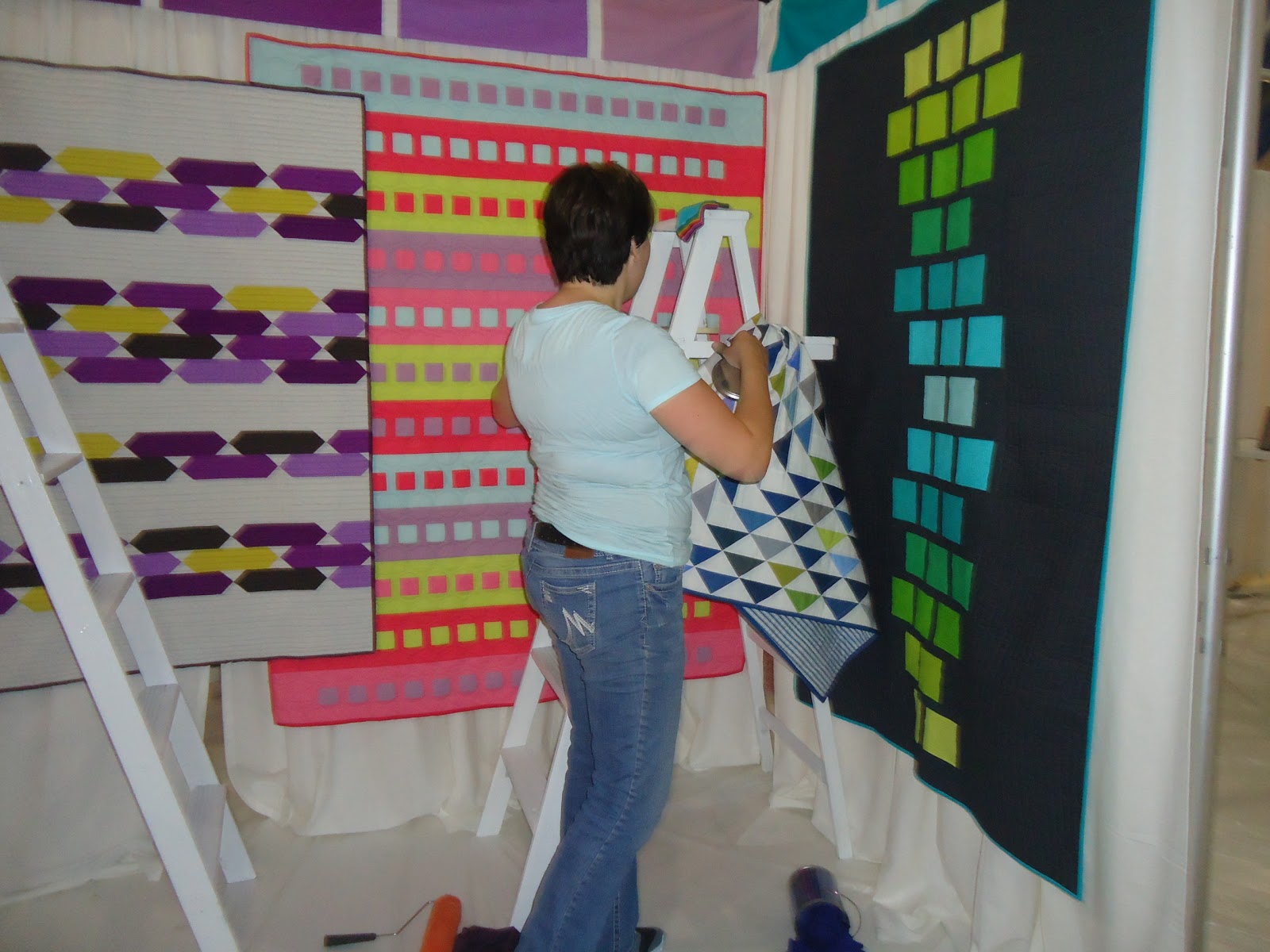 Here's Emily putting finishing touches on her booth with the Michael Miller team.